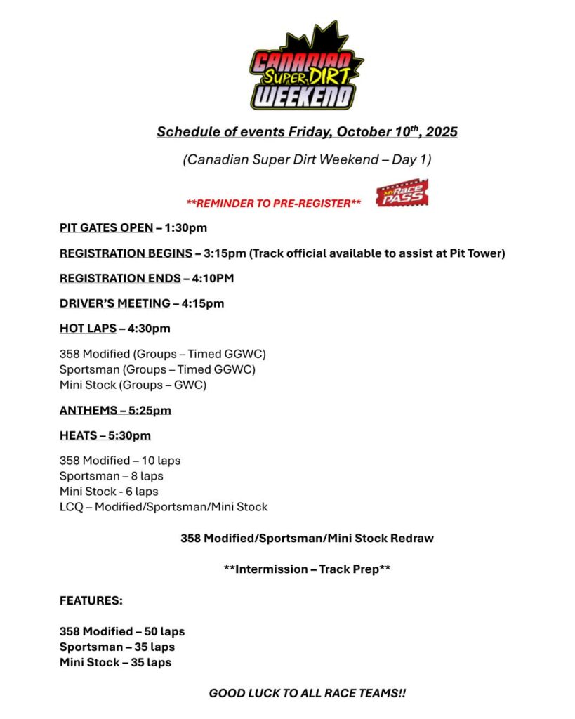 Get all the information on our 6th edition of the Canadian Super DIRT Weekend